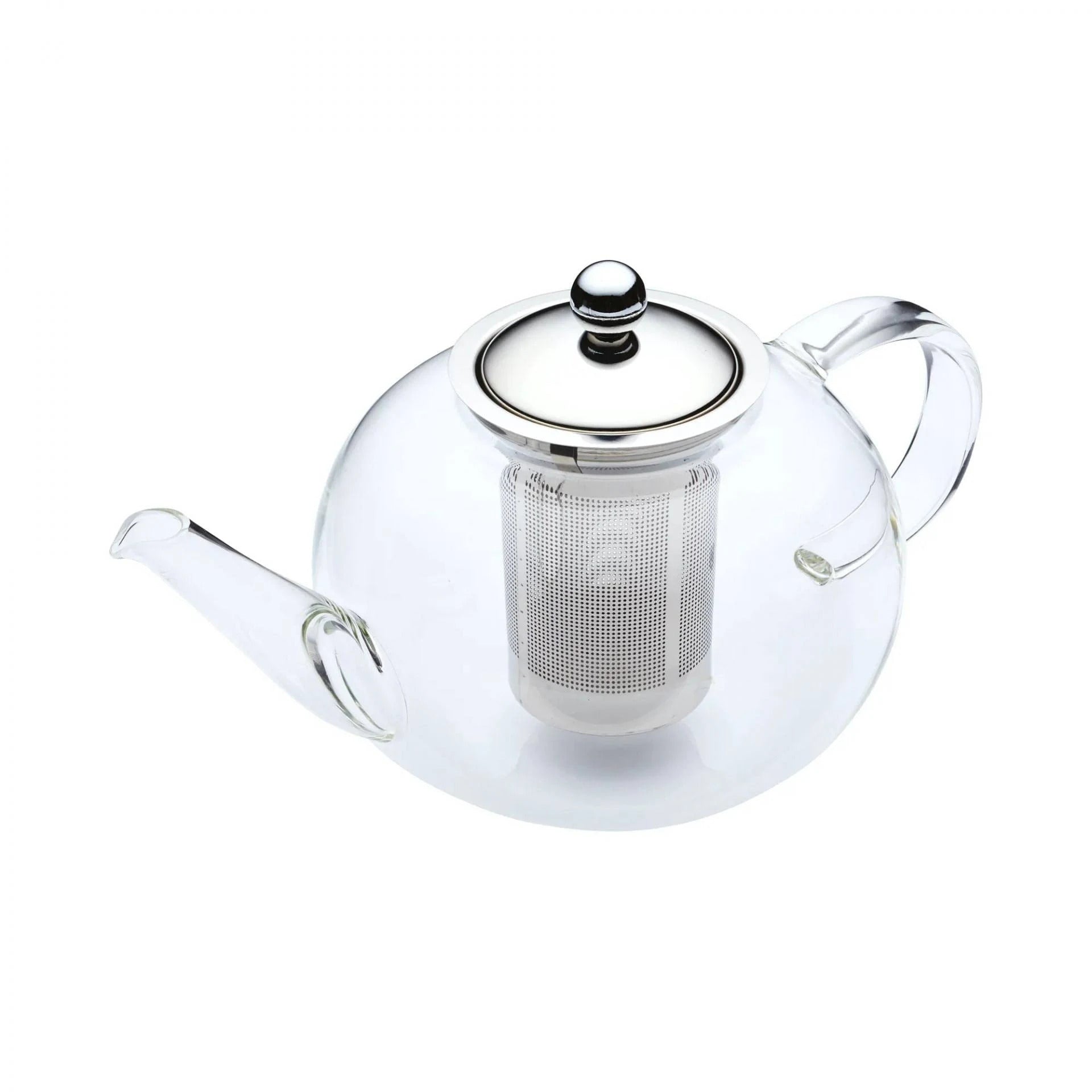 This borosilicate glass teapot with infuser from La Cafetière can be used with loose leaf tea, herbal or fruit infusion. It has the capacity for 6 cups (based on a traditional teacup size serving), or 1.5L (2.5 pints, 50 fl oz). Its integrated stainless-steel filter traps the leaves but ensures all the flavour is infused. It's also removable for easy cleaning. The borosilicate glass is heat and thermal shock resistant, durable and perfect for repeated everyday use.
