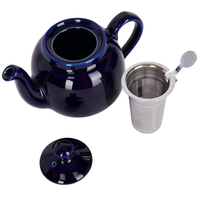 Treat yourself to a soothing cup of tea served with a side of traditional style, using this classic teapot. An excellent example of high-quality UK design, this teapot will have you pouring flawless brews every teatime. It has a removable filter to hold loose tea leaves and floral infusions as they steep, without letting any debris get into your cup. It’s made of durable stoneware in a bright Cobalt Blue colour, with an elongated spout that’s been shaped to prevent any drips or leaks.