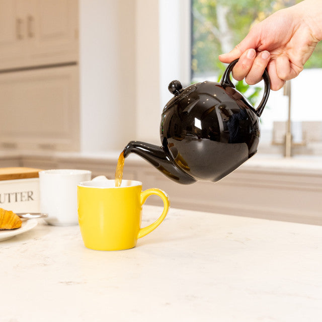 This Globe teapot brings beauty and brilliant performance together. Perfect for extracting the intricate flavours of larger loose leaves and teabags alike, any bigger leaves and petals get held back from your cup by the ceramic filter in the base of the spout. Its long, elegant shape also prevents leaks and drips. Pour your favourite tea easily, without compromising on style. The glazed Black stoneware gives the outside a subtle shine and a certain robustness – without being cumbersome.