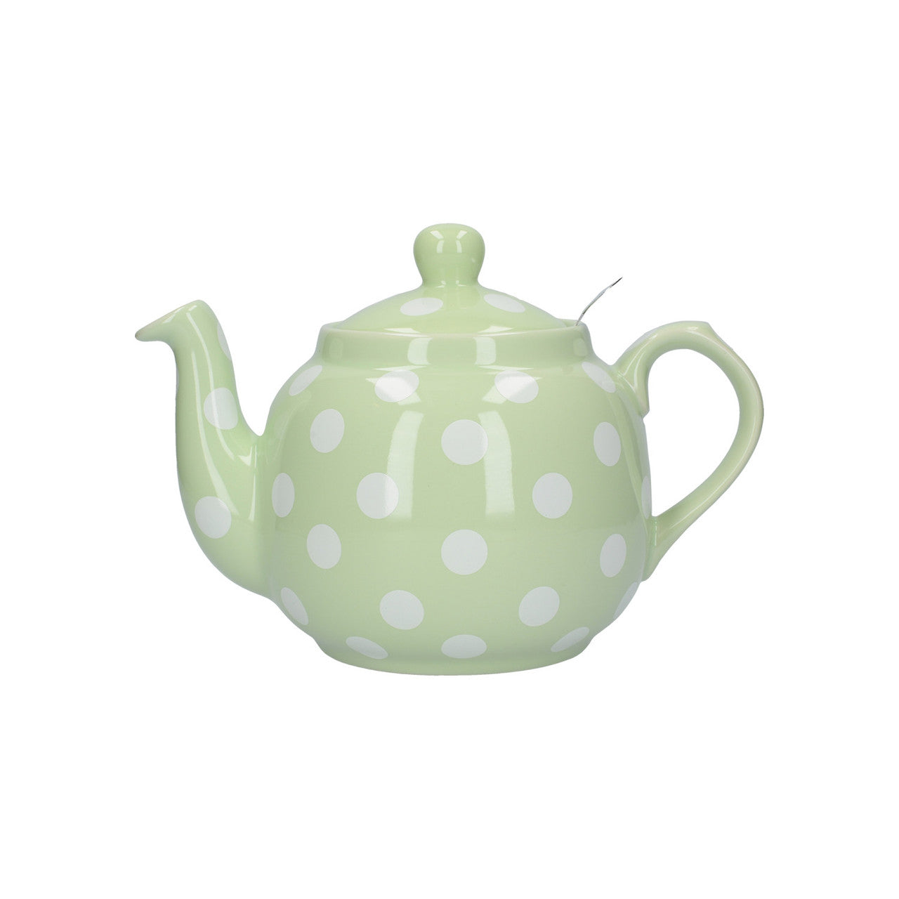 Serve soothing cups of tea the traditional way with this pretty little, polka dot teapot. A shining example of how form and function can come together harmoniously to create something beautiful, this infuser teapot is ready to enhance your teatimes. Designed in the UK, this teapot has tea-serving down to a fine art. Lift it by its comfortable handle and enjoy a seamless pour from its elongated drip-proof spout. Brew any tea you fancy to its flavourful best. This lovely green and white stoneware teapot is suitable for tea bags, floral infusions and loose leaf teas alike due to its removable fine mesh filter.